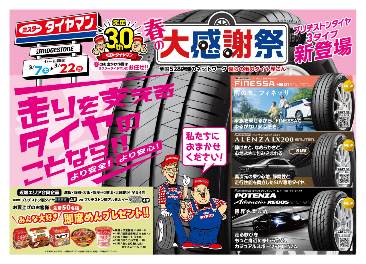 【大阪市東淀川区】僕らの街のタイヤ屋さん、春の大感謝祭! 3/7~3/22【ミスタータイヤマン クロスロード】