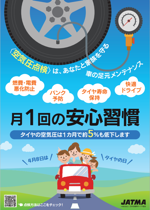 空気圧点検・外傷点検・偏磨耗点検・残溝点検のタイヤセーフティー点検は安全にはかかせません。