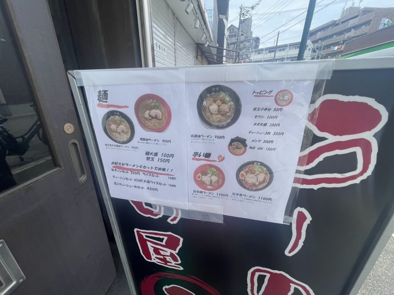 外の立て看板にはメニューが掲示されていました。メニューのラインナップは休業前とほぼ変わらずですが価格の調整はあったようです。