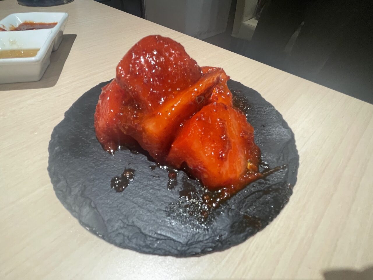 お肉をいただく前に、「名物生キムチ(トマト)」を食べてみましたが、他の店舗ではなかなか味わえないオリジナルキムチでした。新鮮なトマトにピリッとしたキムチの味がクセになるのですが、キムチのたれの隠し味にトマトジュースを入れているのか、浅漬けのトマトでありながらコクを感じる風味に仕上がっていました。