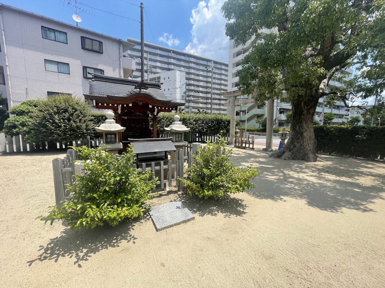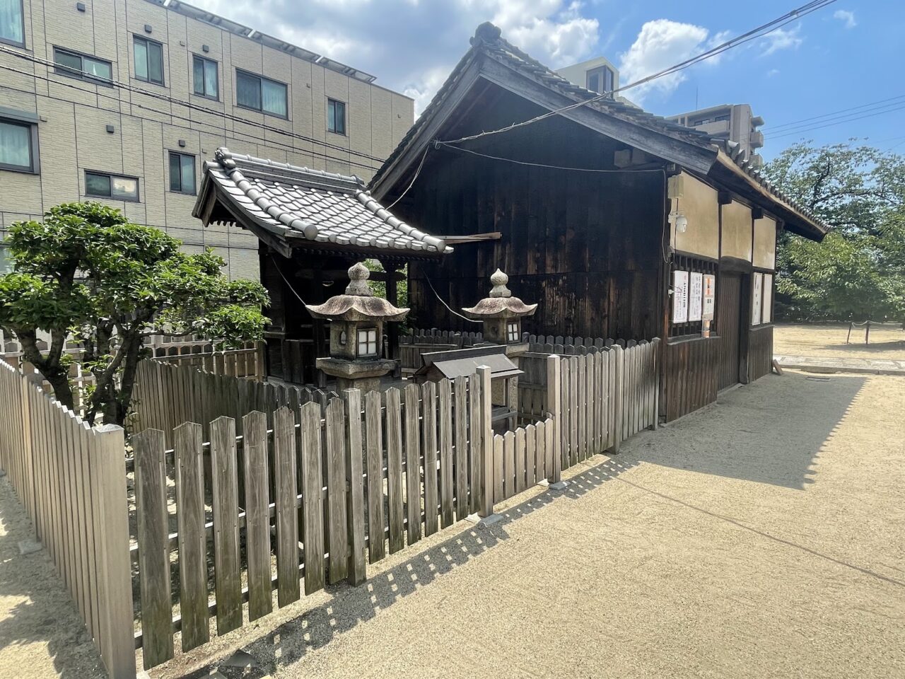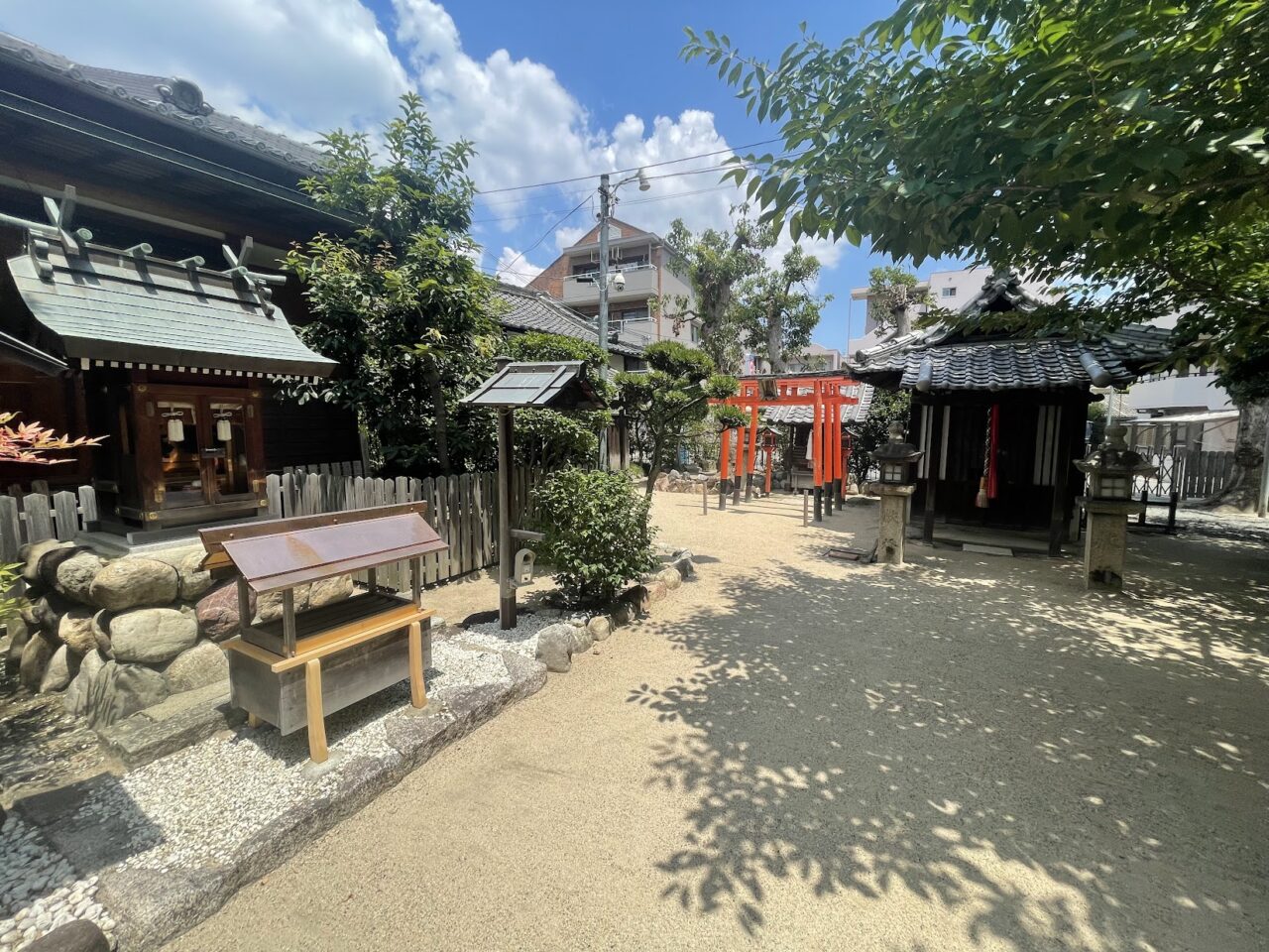 八幡舎と本殿の間には、聖徳太子社があります。聖徳太子は、当初この地に四天王寺を建立しようとしましたが、淀川氾濫による洪水が多かったため、現在の場所に変更されたとのことで、地名に関わる他にも太子に纏わる多くの伝承と共に、聖徳太子社として境内にお祀りされているようです。