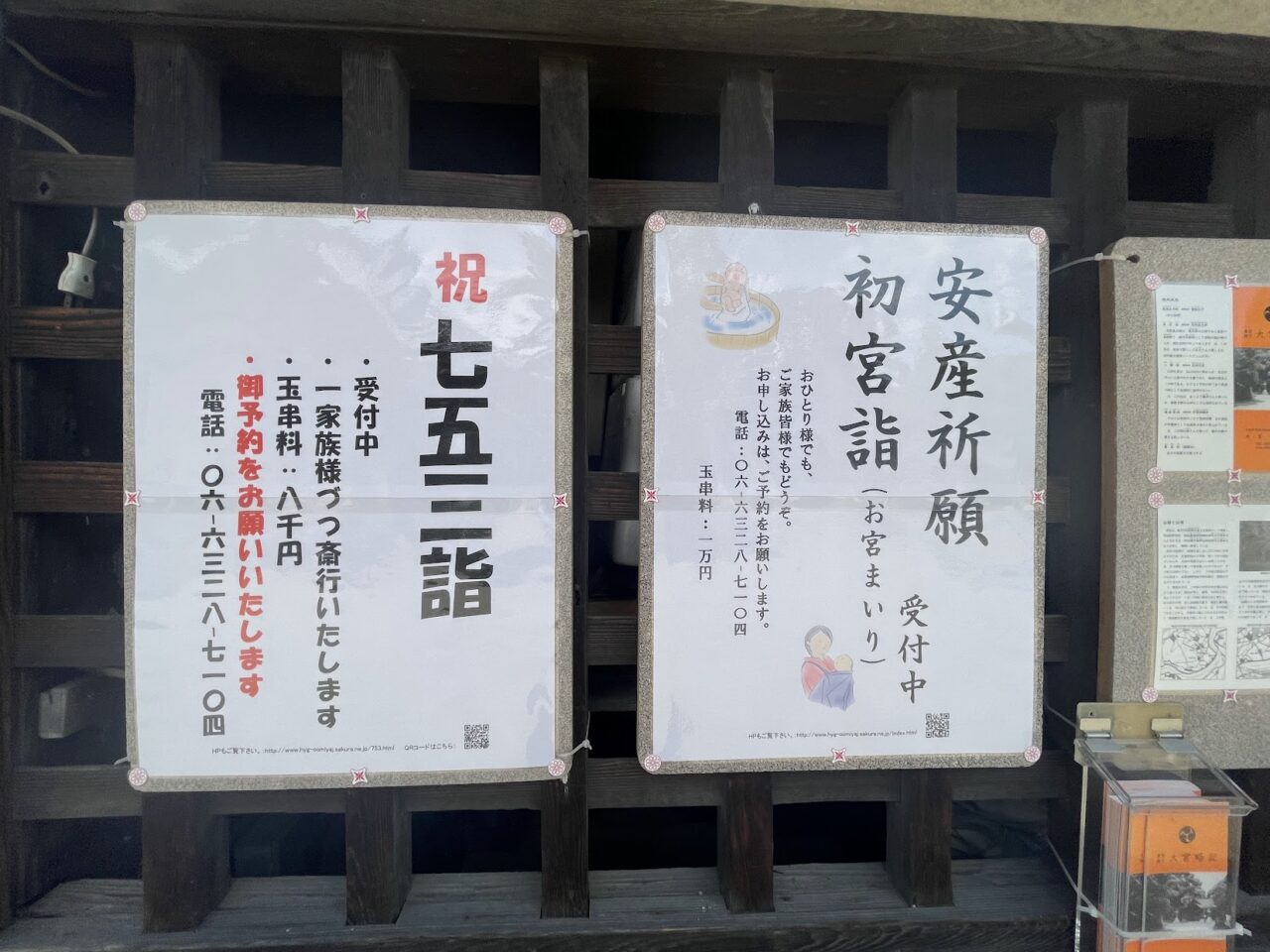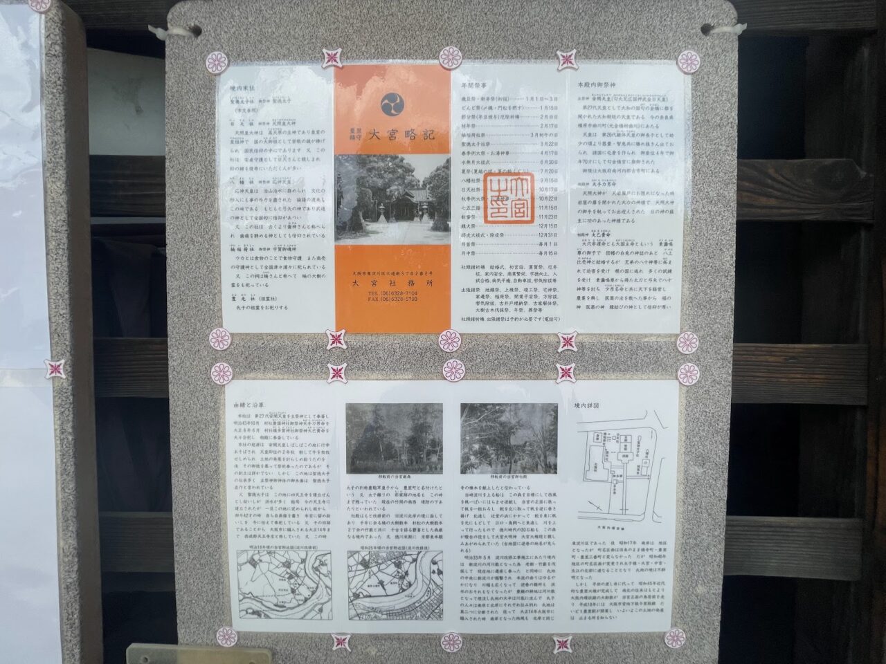 さらに七五三詣での案内の横には、大宮の由縁や境内図、年間催事などが記された「大宮略記」(リーフレット)が掲示されていたので見てみました。