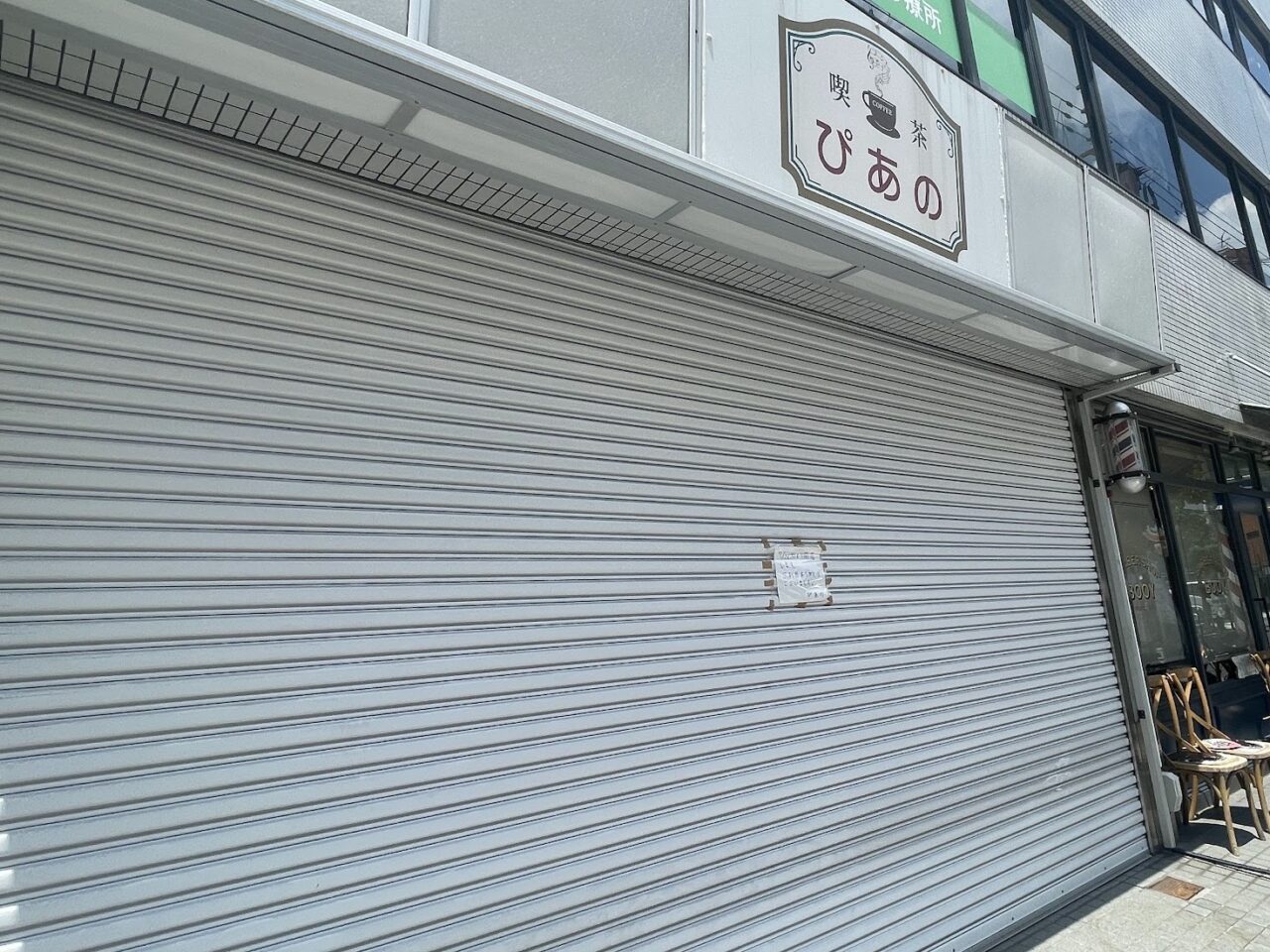 上新庄駅の南口からほど近い場所にある通りにある「喫茶ぴあの」。平日の昼間にシャッターが閉まり張り紙があったので気になったので見てみました。