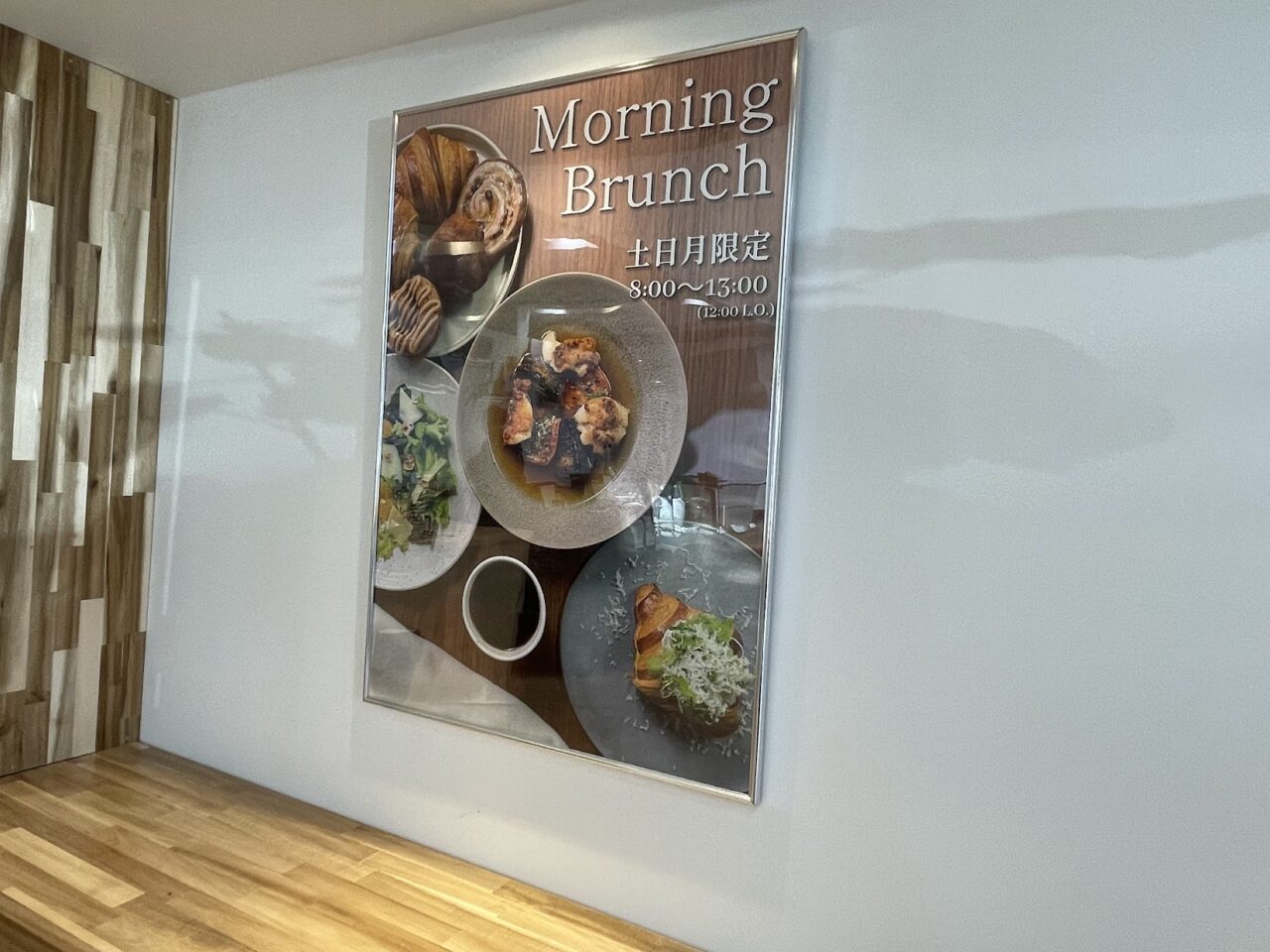 また、店内で過ごしながら周りを見ると、モーニング、ブランチの案内ポスターを発見しました。6月21日(土)から、土・日・月曜日限定で開始したようで、クロワッサンをアレンジした料理やフレンチトースト、しっかり具材が入ったスープなどを食べられるようです。ちょっといい週末、週始まりを過ごしたい時には良さそうですね。